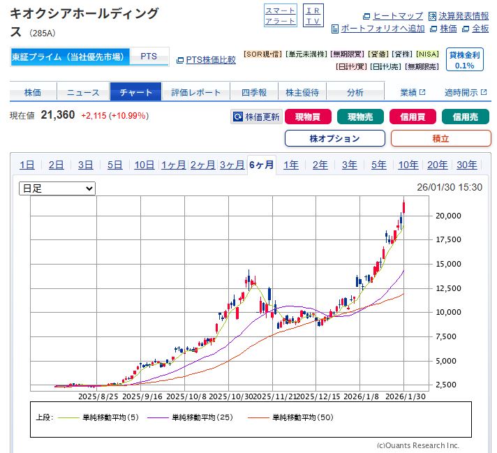 1月30日、日本株市場で最も注目を集めた銘柄は、間違いなくキオクシアホールディングスでした。